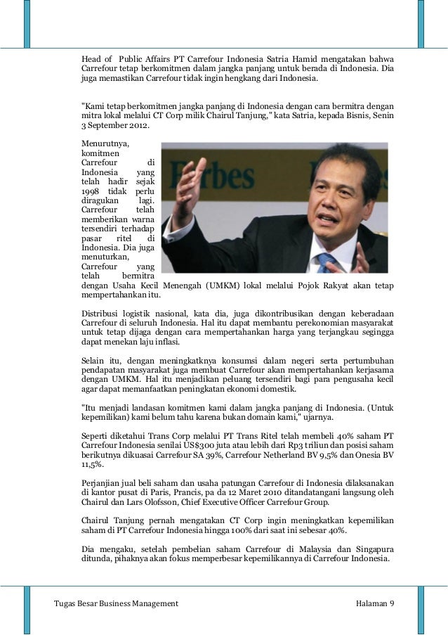 Chairul tanjung resmi kuasai carrefour 100% jakarta: Akuisisi tersebut merupakan lanjutan dari pengambilalihan 40 persen saham carrefour pada 2010. Di sektor jasa keuangan, ct corpora mengkonsolidasikan bisnisnya di bawah naungan mega corpora.